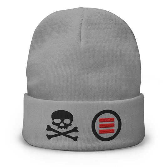 Element Of Danger - E Circled Skull & Cross Bone Embroidered Beanie(Red,Blk)